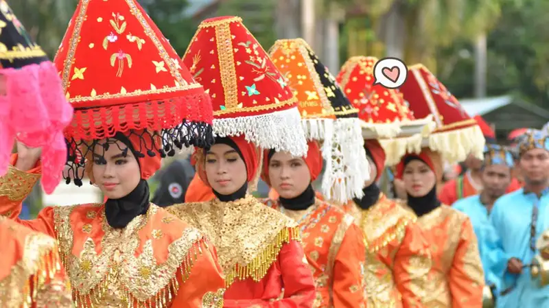 Sedangkan pria mengenakan baju adat bertanjak, sarung songket, dan keris sebagai simbol kejantanan. Pakaian adat ini biasanya dipakai dalam acara resmi, pernikahan, dan upacara adat lainnya.